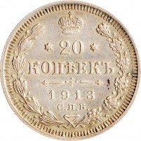 20 копеек 1913 СПБ-ВС