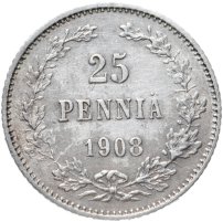 25 пенни (pennia) 1908 L, монета для Финляндии
