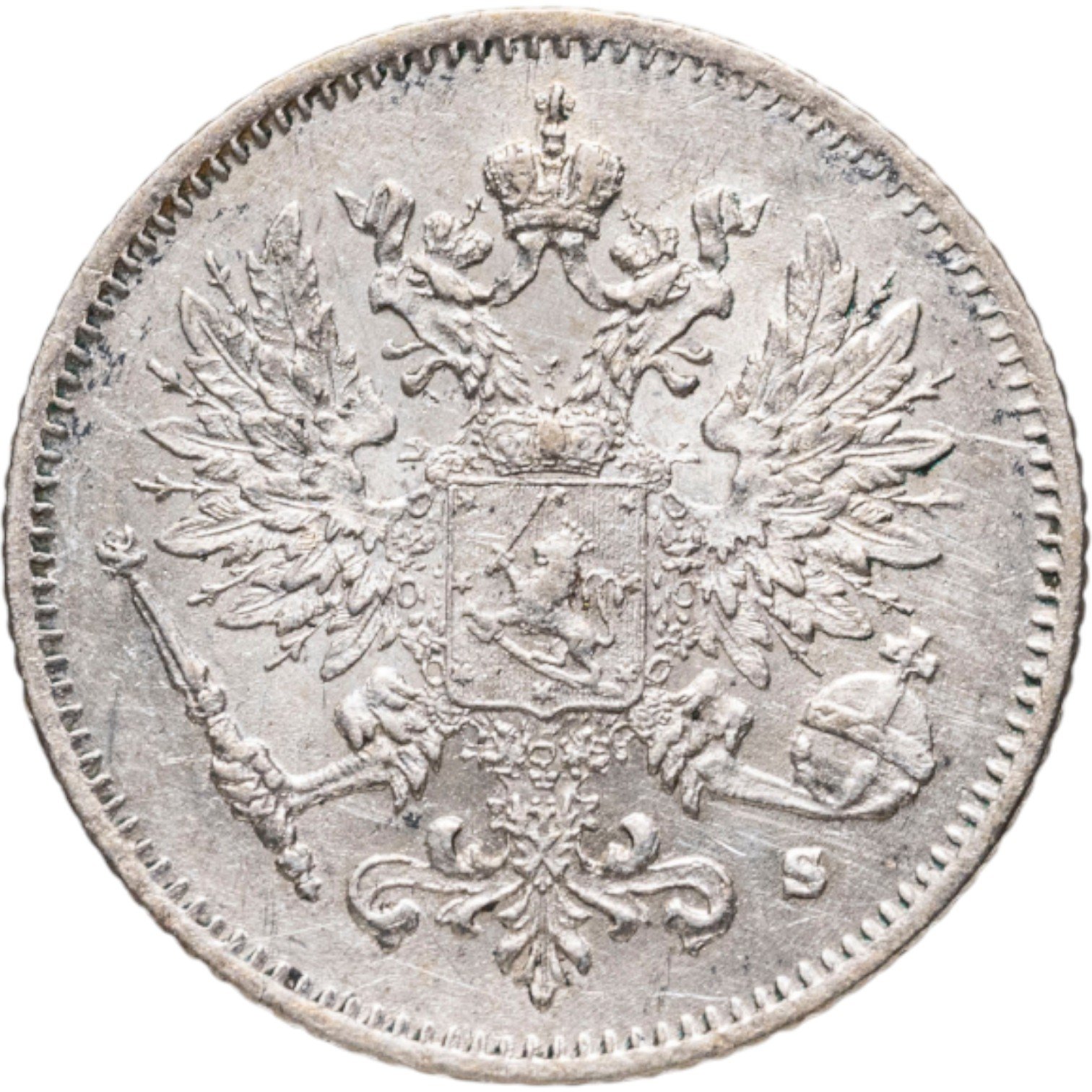 В центре изображён полный Герб Великого княжества Финляндского - двуглавый орёл, головы которого увенчаны двумя коронами, третья, большая корона над ними. Все они соединены орденской лентой ордена Св. Апостола Андрея Первозванного. На груди орла расположен щит с титульным гербом Великого князя Финляндского, увенчанный княжеской короной. Вокруг щита орденская цепь с орденом Св. Апостола Андрея Первозванного. В правой лапе орла – скипетр, в левой – держава. Под левой лапой знак директора Гельсингфосского монетного двора - литера «S», Isak Gustaf Sundell (Исаак Густаф Сундель). По окружности канта имеются рельефные элементы, выполненные в виде зубцов.