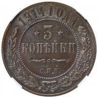 Купить 3 копейки 1914 СПБ в слабе ННР MS64BN