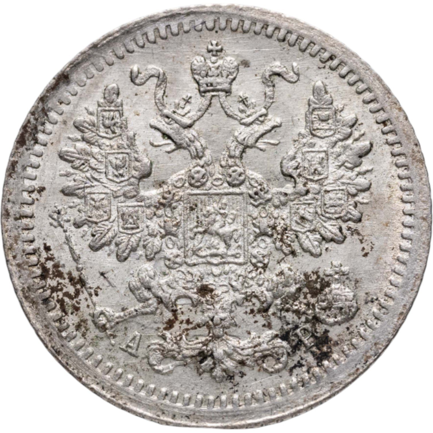 В центре изображен Малый Государственный Герб Российской империи - двуглавый орёл, головы которого увенчаны двумя коронами, третья, большая корона над ними. Все они соединены орденской лентой ордена Св. Апостола Андрея Первозванного. На груди орла расположен Московский герб, в щите изображен Георгий Победоносец с копьем поражающий дракона. Вокруг щита цепь ордена Св. Апостола Андрея Первозванного. На крыльях изображены гербы: Царства Казанского, Польского, Херсонеса Таврического, Астраханского, Сибирского, Грузинского и герб соединенных княжеств Киевского, Новгородского и Владимирского — по 4 на каждое крыло. В правой лапе орла – скипетр, в левой – держава. Под правой лапой – буква «А», под левой – буква «Р». Инициалы минцмейстера Александра Редько. По окружности канта имеются рельефные элементы, выполненные в виде зубцов.