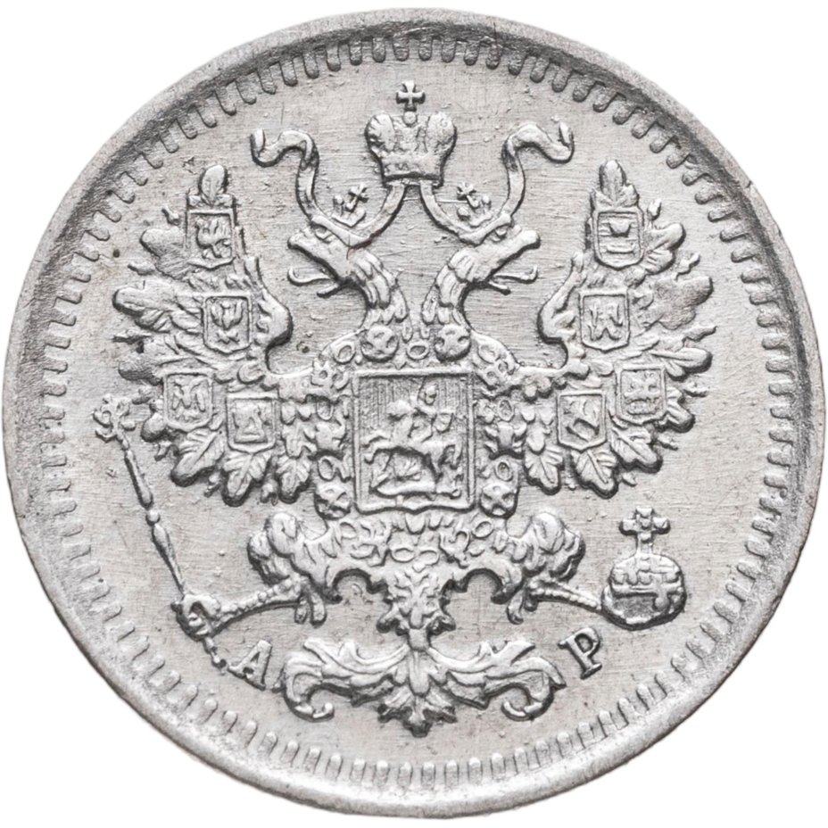 В центре изображен Малый Государственный Герб Российской империи - двуглавый орёл, головы которого увенчаны двумя коронами, третья, большая корона над ними. Все они соединены орденской лентой ордена Св. Апостола Андрея Первозванного. На груди орла расположен Московский герб, в щите изображен Георгий Победоносец с копьем поражающий дракона. Вокруг щита цепь ордена Св. Апостола Андрея Первозванного. На крыльях изображены гербы: Царства Казанского, Польского, Херсонеса Таврического, Астраханского, Сибирского, Грузинского и герб соединенных княжеств Киевского, Новгородского и Владимирского — по 4 на каждое крыло. В правой лапе орла – скипетр, в левой – держава. Под правой лапой – буква «А», под левой – буква «Р». Инициалы минцмейстера Александра Редько. По окружности канта имеются рельефные элементы, выполненные в виде зубцов.