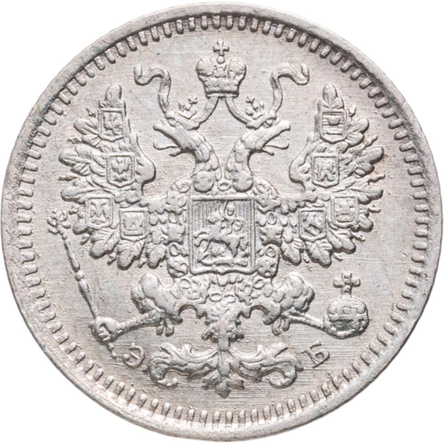 В центре изображен Малый Государственный Герб Российской империи - двуглавый орёл, головы которого увенчаны двумя коронами, третья, большая корона над ними. Все они соединены орденской лентой ордена Св. Апостола Андрея Первозванного. На груди орла расположен Московский герб, в щите изображен Георгий Победоносец с копьем поражающий дракона. Вокруг щита цепь ордена Св. Апостола Андрея Первозванного. На крыльях изображены гербы: Царства Казанского, Польского, Херсонеса Таврического, Астраханского, Сибирского, Грузинского и герб соединенных княжеств Киевского, Новгородского и Владимирского — по 4 на каждое крыло. В правой лапе орла – скипетр, в левой – держава. Под правой лапой – буква «Э», под левой – буква «Б». Инициалы минцмейстера Эликума Бабаянца. По окружности канта имеются рельефные элементы, выполненные в виде зубцов.