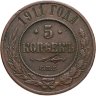 Краткие сведения о монете 5 копеек 1911 года. Медь, серебро и пробная чеканка. Монеты Proof. Иллюстрации