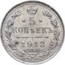 5 копеек 1913 СПБ-ВС в слабе ННР MS64