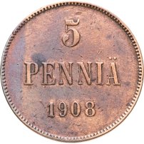 Купить 5 пенни (pennia) 1908 Российская Финляндия