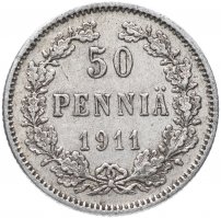 50 пенни 1911 L, монета для Финляндии
