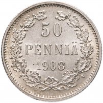 50 пенни (pennia) 1908 L, монета для Финляндии