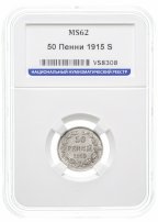 50 пенни (pennia) 1915 S, монета для Финляндии в слабе HHP MS 62