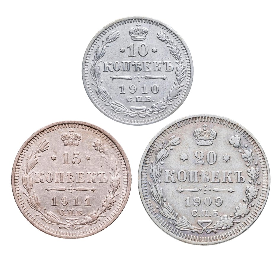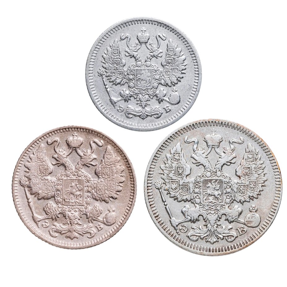 Годы выпуска монет, которые Вы получите, могут не совпадать с представленными на изображениях. В наличии имеются различные годы от 1894 до 1915. Сохранность всех монет не хуже VF.