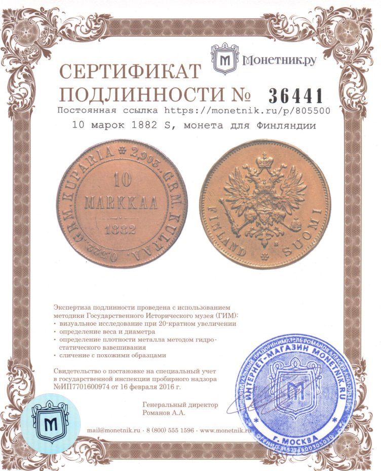 10 марок 1913 S, монета для Финляндии в слабе Монетник. ру MS62