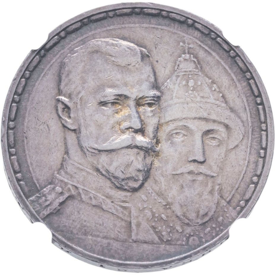 1 рубль 1913 ВС в память 300-летия дома Романовых, выпуклый чекан, в слабе NGC AU58
