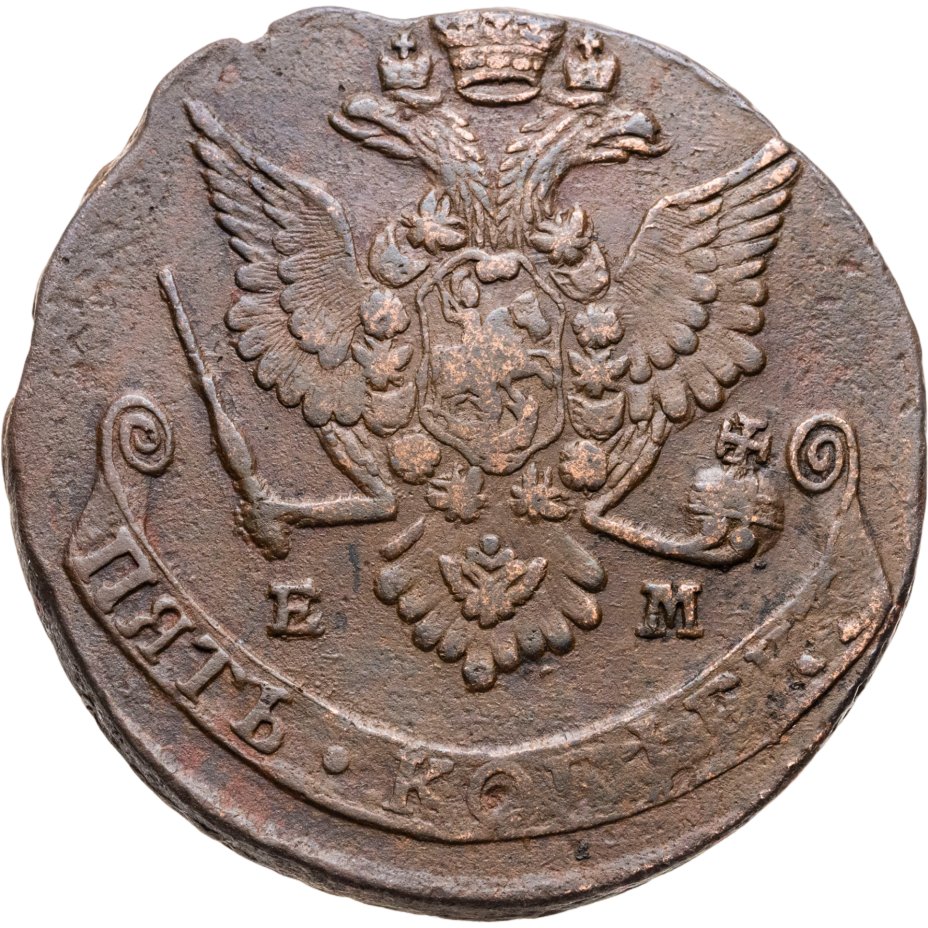 5 копеек 1779 ЕМ орёл 1780-1787, нового образца