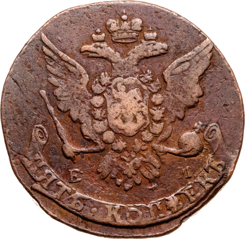 5 копеек 1727 КД ПѦТЬ КОПѢѦКЬ, одна из точек над короной