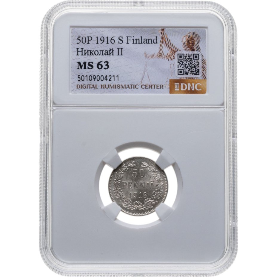 50 пенни (pennia) 1916 S Российская Финляндия в слабе DNC MS63