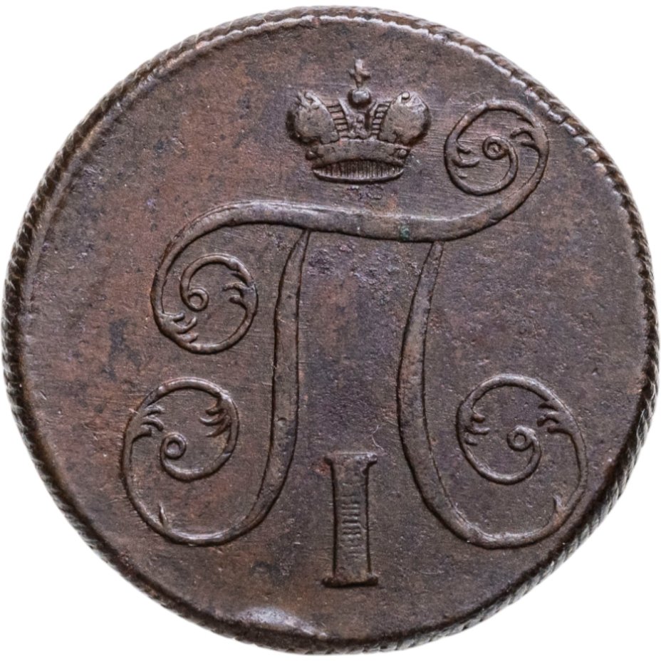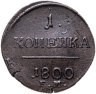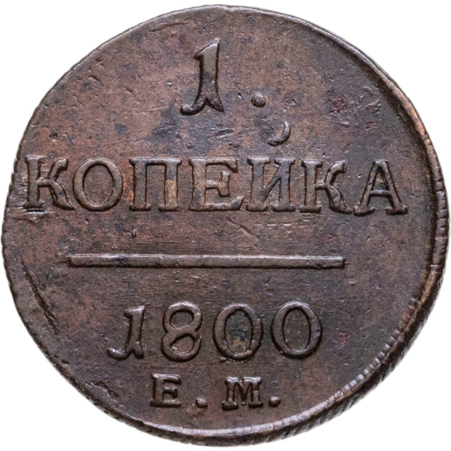 В центре надпись — слово «КОПЕЙКА». Над надписью — цифра «1.». Под надписью — прямая черта, под ней — дата выпуска монеты «1800». Под датой обозначение Екатеринбургского монетного двора — буквы «Е.М.».