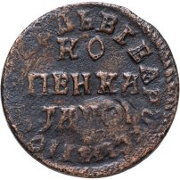 В центре указан номинал в две строки: «КО»│«ПЕИКА». Под надписью, кириллицей, указан год выпуска - «1716». Вокруг центрального изображения круговая надпись: «ВСЕѦ РОССIИ ПОВЕЛIТЕЛЬ».