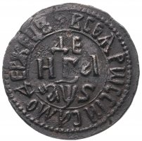 В центре указан номинал в две строки: «ДЕ»│«НГА». Под надписью, кириллицей, указан год выпуска - «1706». Центральное изображение окружено линейной окружностью. За окружностью надпись: «ВСЕѦ РWССIИ САМОДЕРЖЕЦЪ». По окружности канта имеются рельефные элементы, выполненные в виде точек.