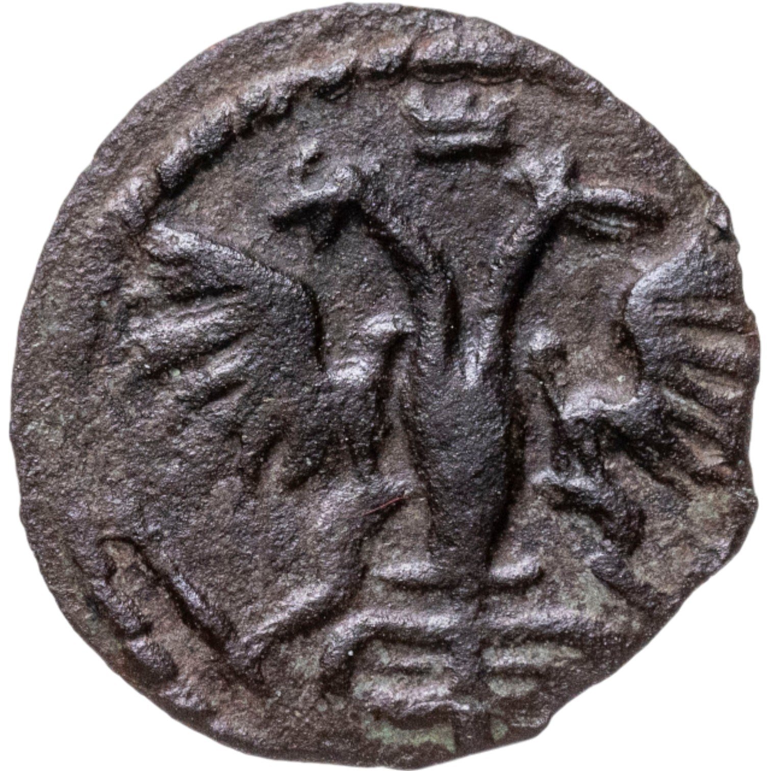купить Полушка 1721 без обозначения монетного двора, год цифрами (с перепутанной датой 1221 вместо 1721)