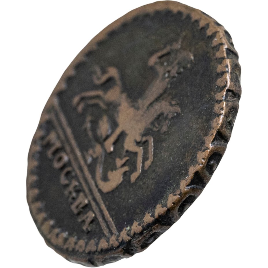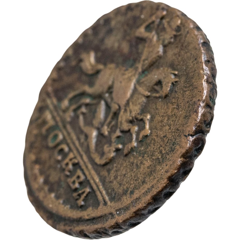 Копейка 1728 года «МОСКВА» – медная разменная монета периода правления Петра II. Монеты этого типа производилась в 1728-1729 годах на двух московских монетных дворах – Кадашевском и Плащильной мельнице на Яузе. Лицевая и оборотная стороны окружены кантом с крупными зубцами, обращёнными внутрь.