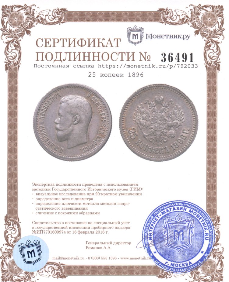 25 копеек 1896