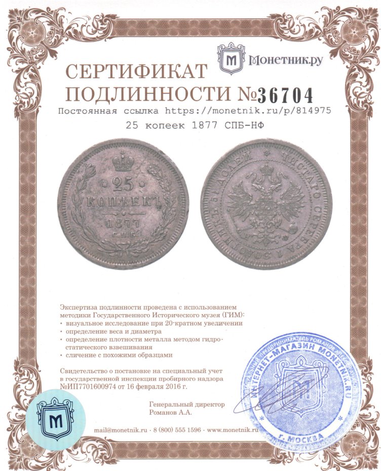 25 копеек 1877 СПБ-НФ