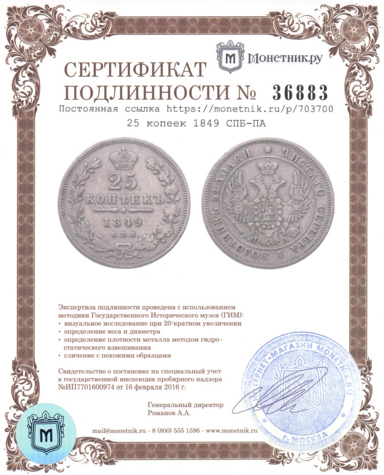 25 копеек 1849 СПБ-ПА