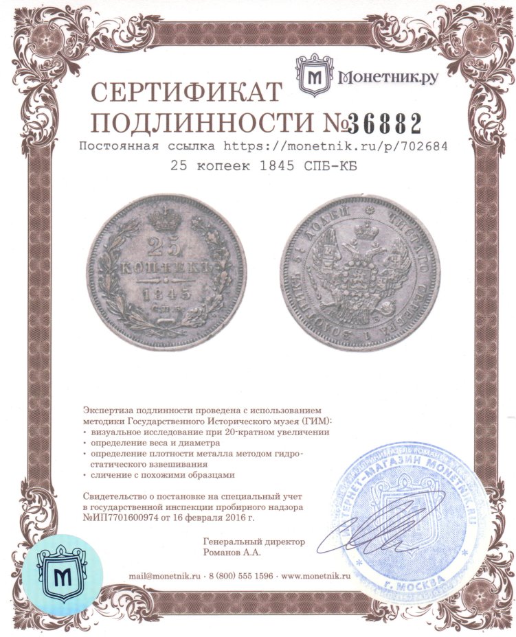 25 копеек 1845 СПБ-КБ