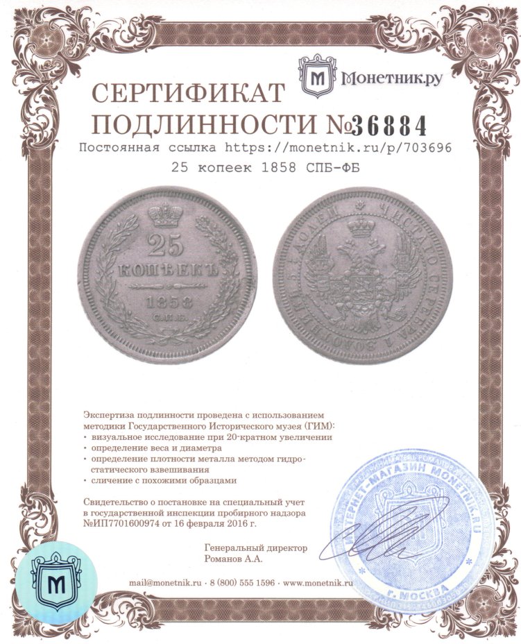 25 копеек 1858 СПБ-ФБ