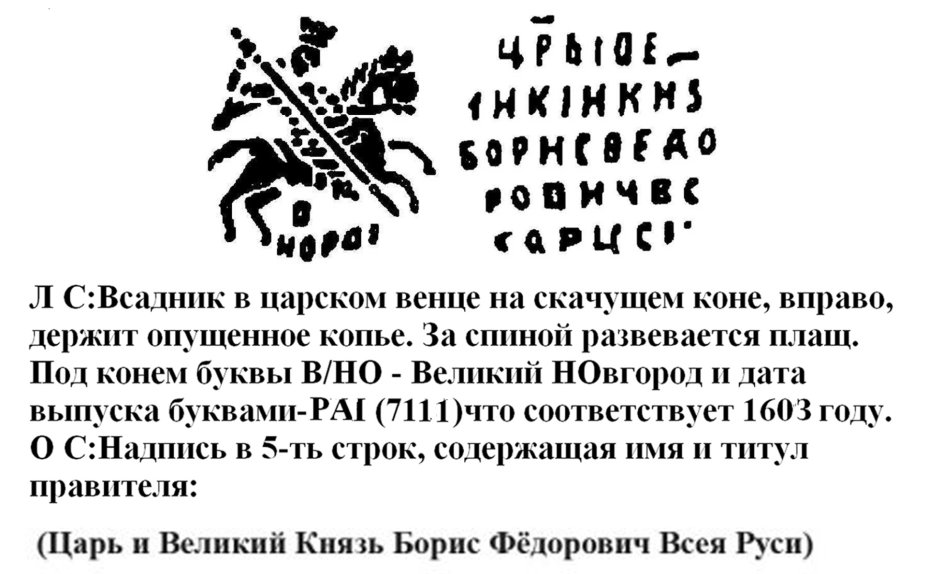 Новгородская копейка Бориса Фёдоровича Годунова. Датированная-1603г. Довольно Редкая-R8.