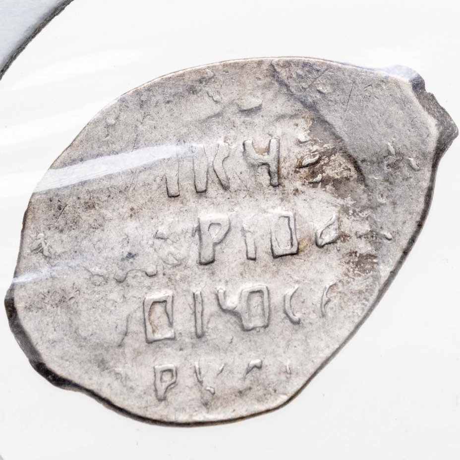Под изображением коня встречаются надписи, которые расшифровываются следующим образом: ПС — Псков, Н и НЕ — Новгород, при этом гласная «Е» утрачена при эксплуатации маточника. Сокращение с/М обозначает город чеканки — Москву. Существуют и другие обозначения.