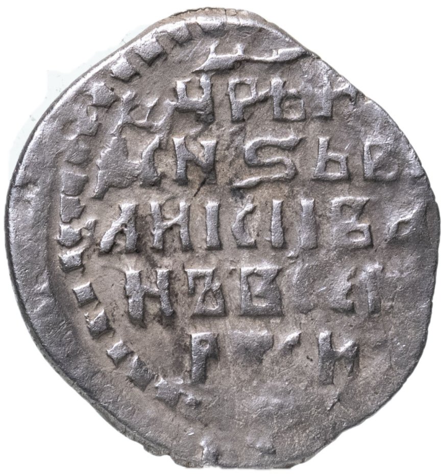 ОБОРОТНАЯ СТОРОНА :Надпись в пять строк, содержащая имя и титул правителя.