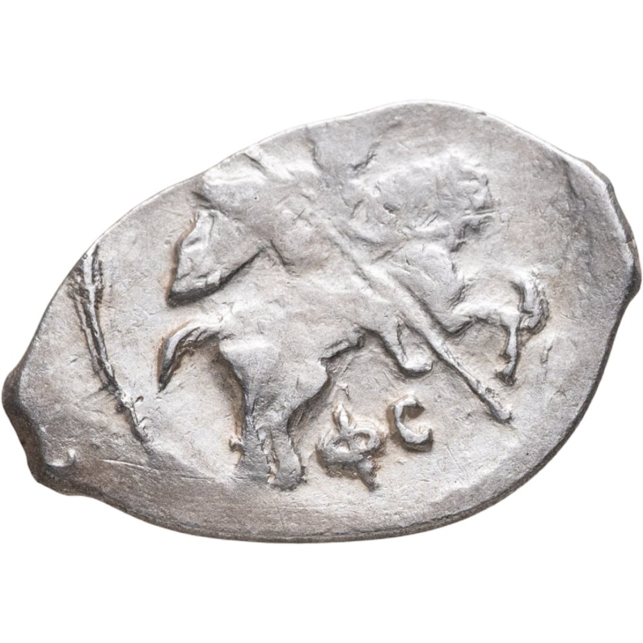 Интересный тип монеты, чеканки монетного двора Новгорода. В отличие от безымянных копеек изображение всадника на копейке с буквами "ФС". Главной особенностью этой монеты является легенда, содержащая краткий титул и имя великого князя; "Князь великий Иван всея Руси". Ее выпуск открывает послереформенную чеканку Ивана IV.
