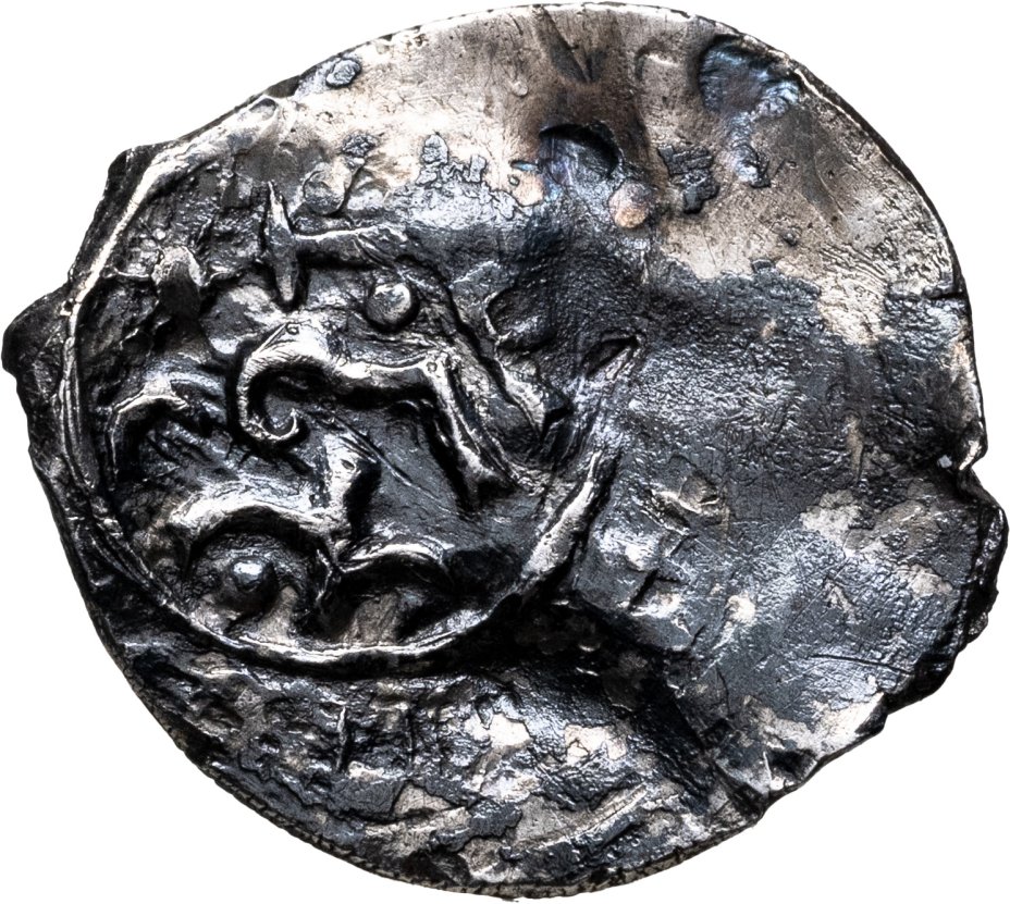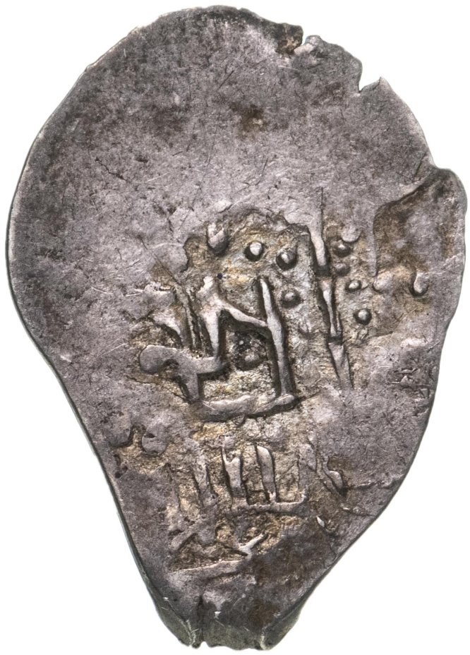 Этот период охватывает 1383-1431 гг. На оформление русских монет влияет Золотая Орда: чешуйки имеют арабские надписи и символы. Иногда монеты имитируют ордынские денежные знаки целиком. Ордынские пометки могут искажаться: чеканщики, вырезая штемпели, часто копируют узоры как рисунок, иногда — с другой копии.