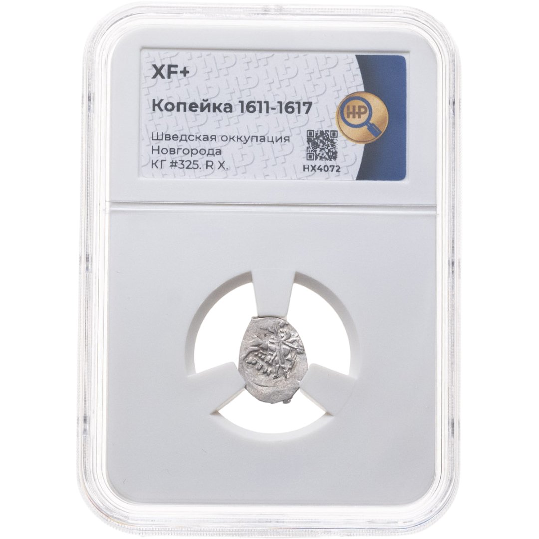 16 июля 1611 года шведские войска под командованием Якоба Делагарди заняли Новгород. Шведские захватчики использовали налаженное денежное производство в Новгороде. С 1611 года шведы чеканили в Новгороде копейки по облегченной стопе в 3,6 рубля (с весовой нормой в 0,57 г). К 1615 году вес монет снижается и составляет 0,54 — 0,55 г. В марте 1615 года началась чеканка по новой стопе в 3,9 рубля (0,53 г). В дальнейшем вес монет был снижен до 0,48 г. В феврале 1617 года был заключен Столбовский мир, по нему Новгород был оставлен Швецией.