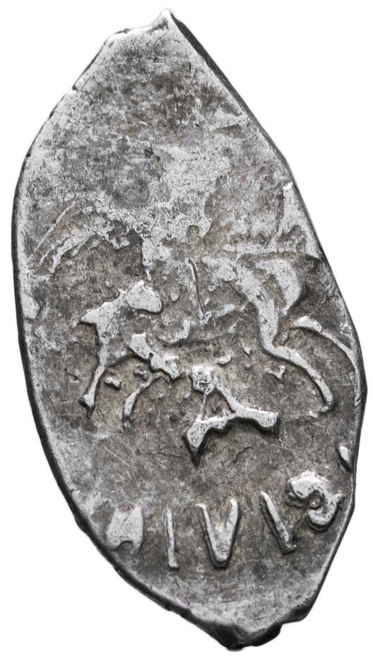 ЛИЦЕВАЯ СТОРОНА: Всадник на коне, направо, с занесенной над головой саблей. Позади развевается плащ. Под конем буквы (Д)