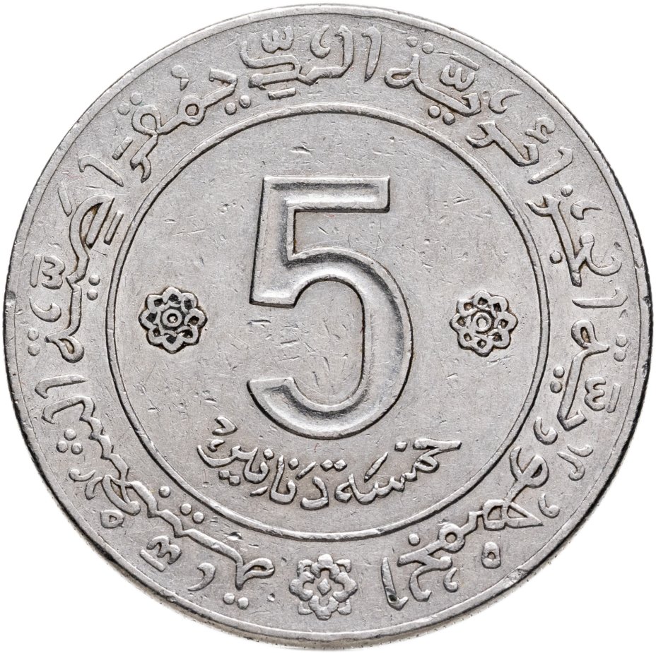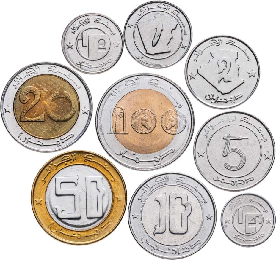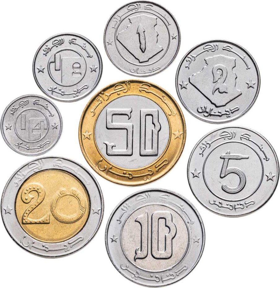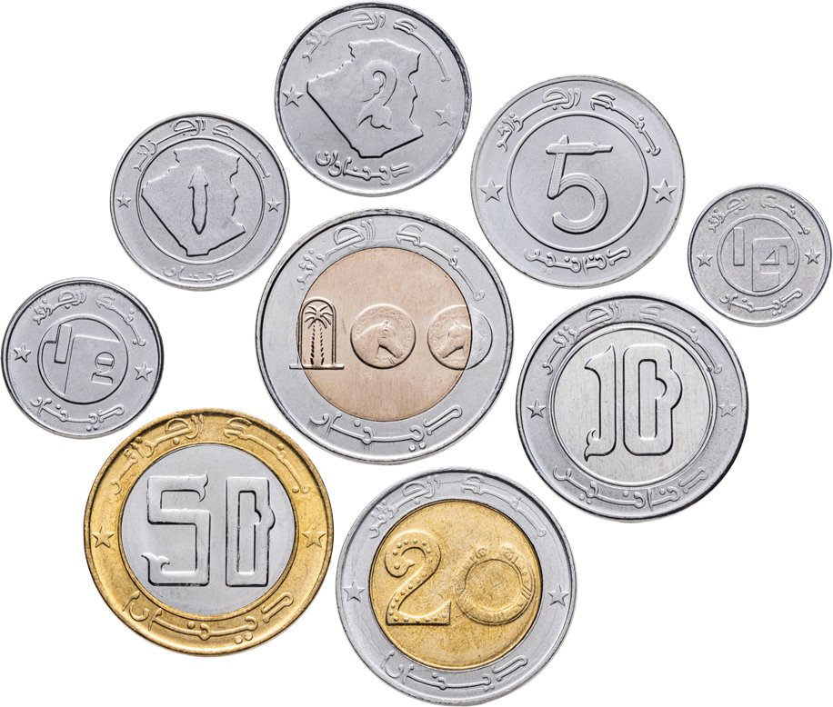 Во время французского периода истории Алжира в обращении находились специально выпущенные для страны франки с изображением «Марианны» и легенды «REPUBLIQUE FRANÇAISE» на аверсе. На реверсе изображался номинал, год чеканки и надпись «ALGERIE». Алжирская Народная Демократическая Республика обрела независимость в 1962 году и, денежной единицей государства стал динар, состоящий из ста сантимов.