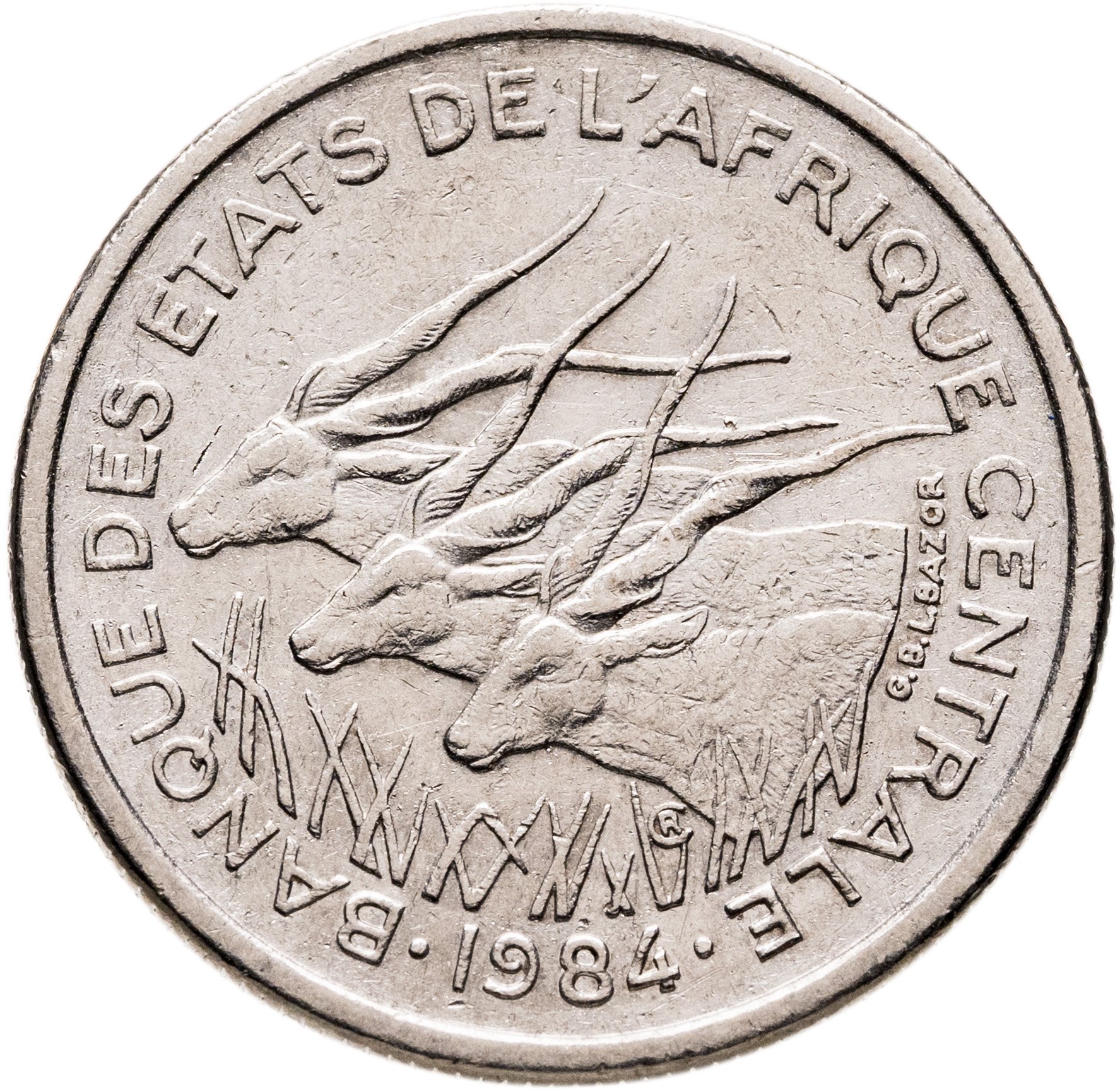 Купить Центральная Африка (BEAC) 50 франков (francs) 1984 Отметка на реверсе "B" - Центральноафриканская Республика