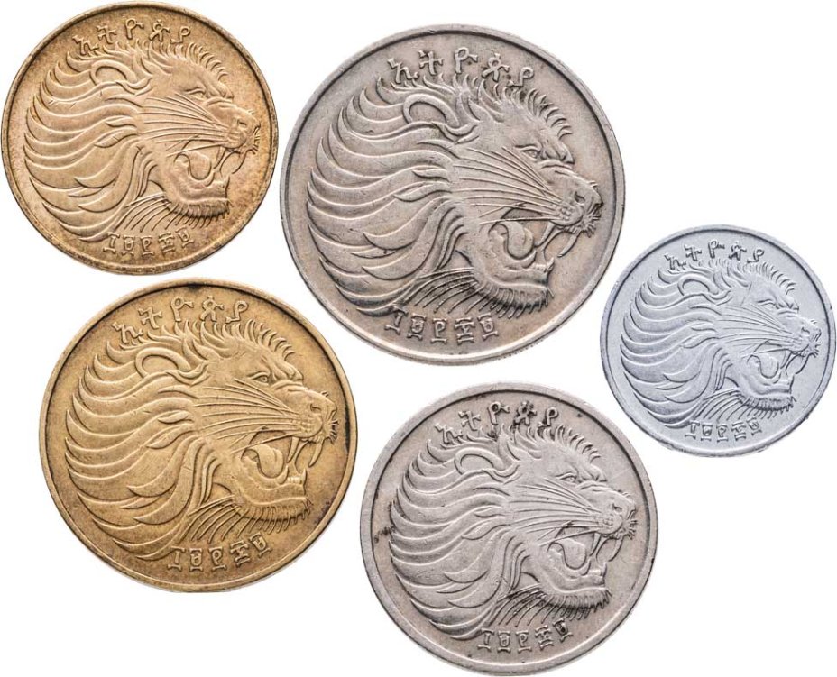 Отметим и то, что на аверсе всех эфиопских монет изображена голова льва, которая обрамлена арабской вязью. Интересной особенностью монет выпущенных в Эфиопии является то, что дата чеканки на них указана по эфиопскому календарю, который отстает от привычного нам Юлианского календаря на 8 лет. Монеты выпущенные в Эфиопии Вы сможете найти в нашем магазине.