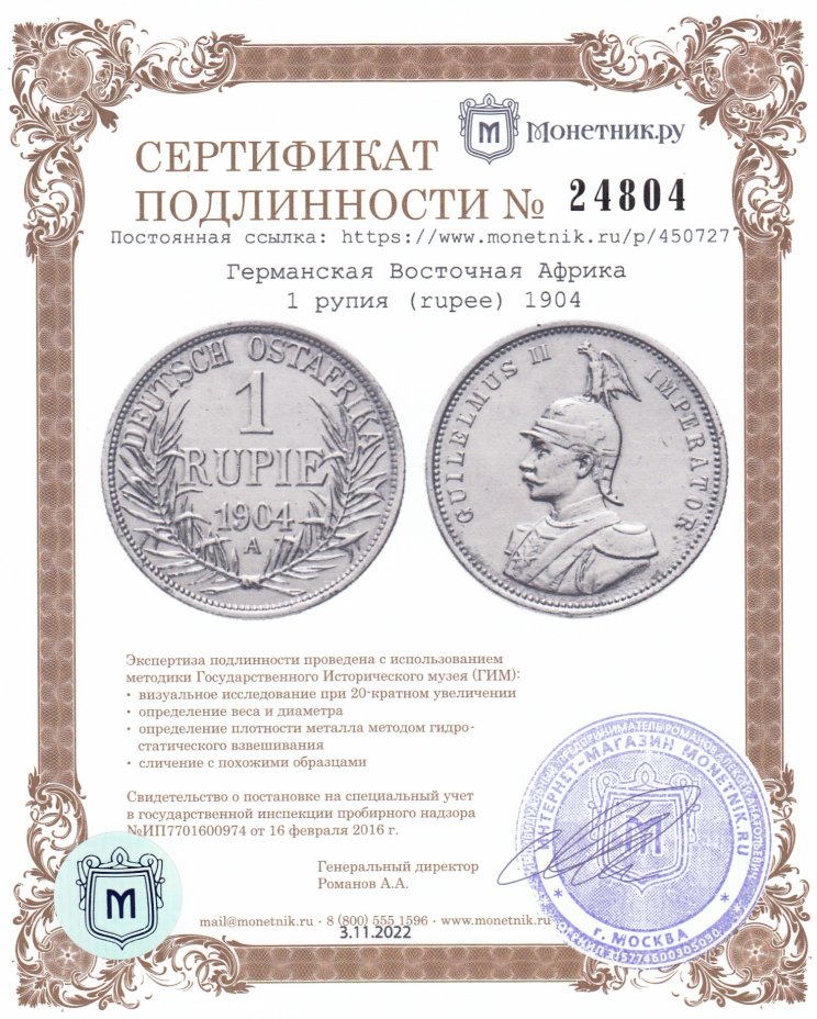 Германская Восточная Африка 1 рупия (rupee) 1904