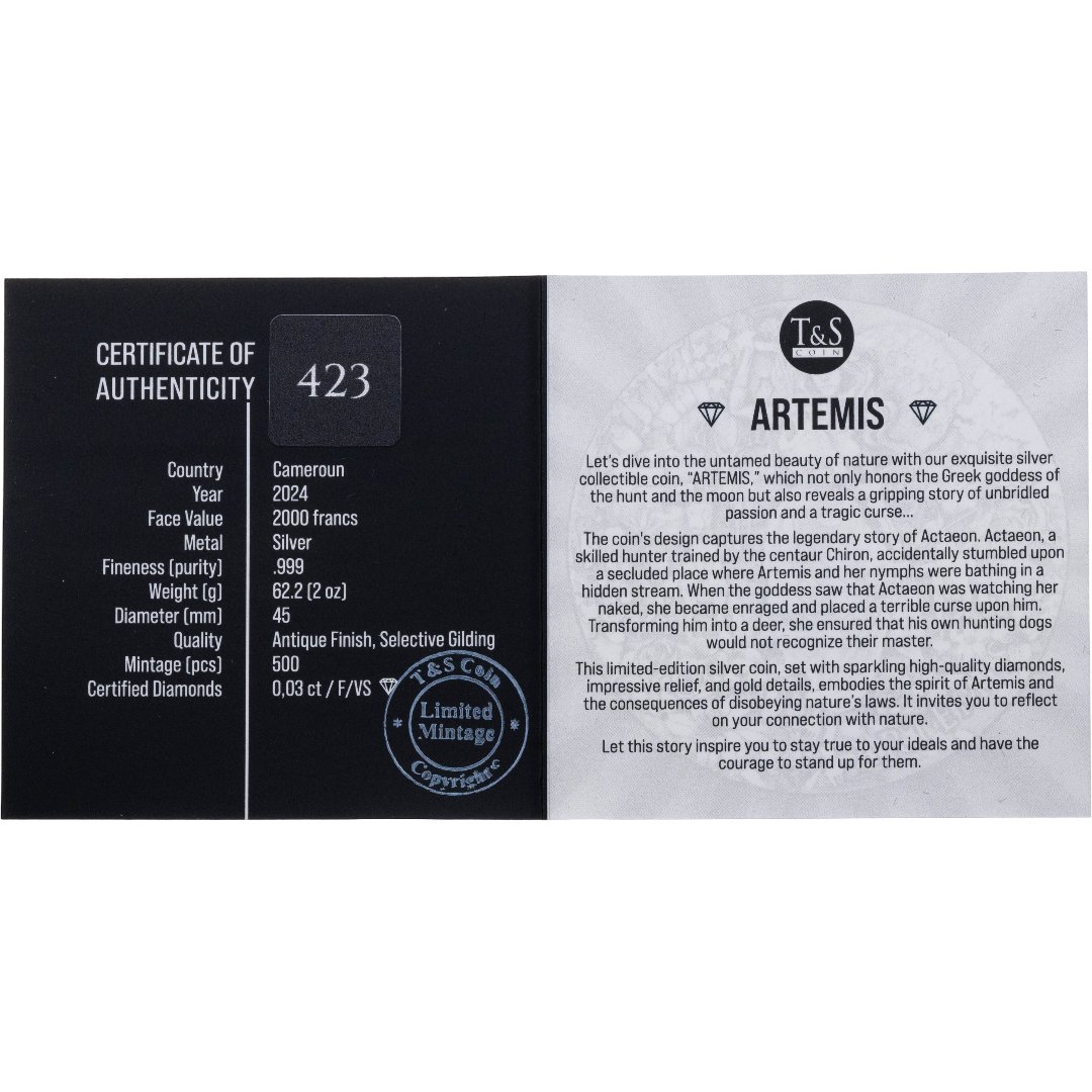Купить Камерун 2000 франков 2024 "Артемида собака" в футляре с сертификатом