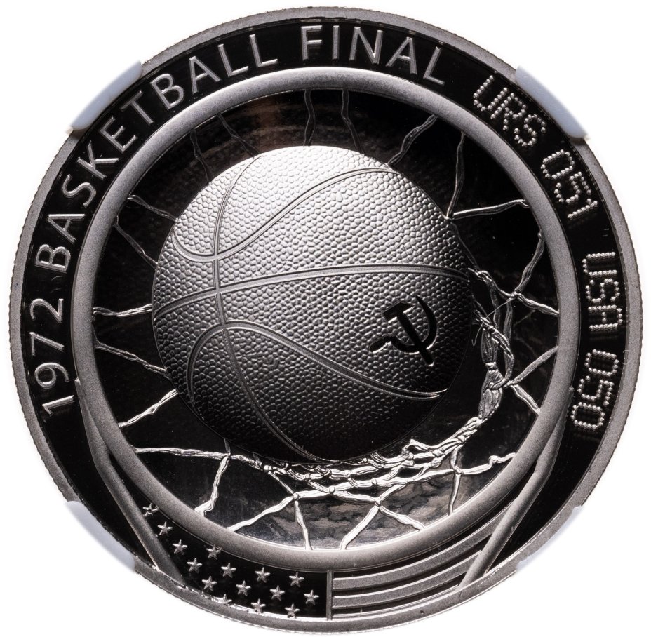 —подобная монета 21 декабря 2025 г. на баскетбольном матче ЦСКА—МБА-МАИ была торжественно вручена Ивану Едешко, знаменитому баскетболисту, члену сборной СССР по баскетболу 1972 г. на Олимпиаде в Мюнхене, отдавшему решающий пас Александру Белову через всю площадку в 3-х секундной концовке матча