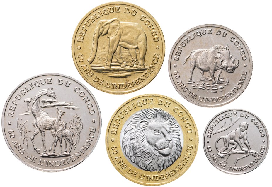 Купить Конго Набор из 5 монет "60 лет Независимости" 2020 Фауна