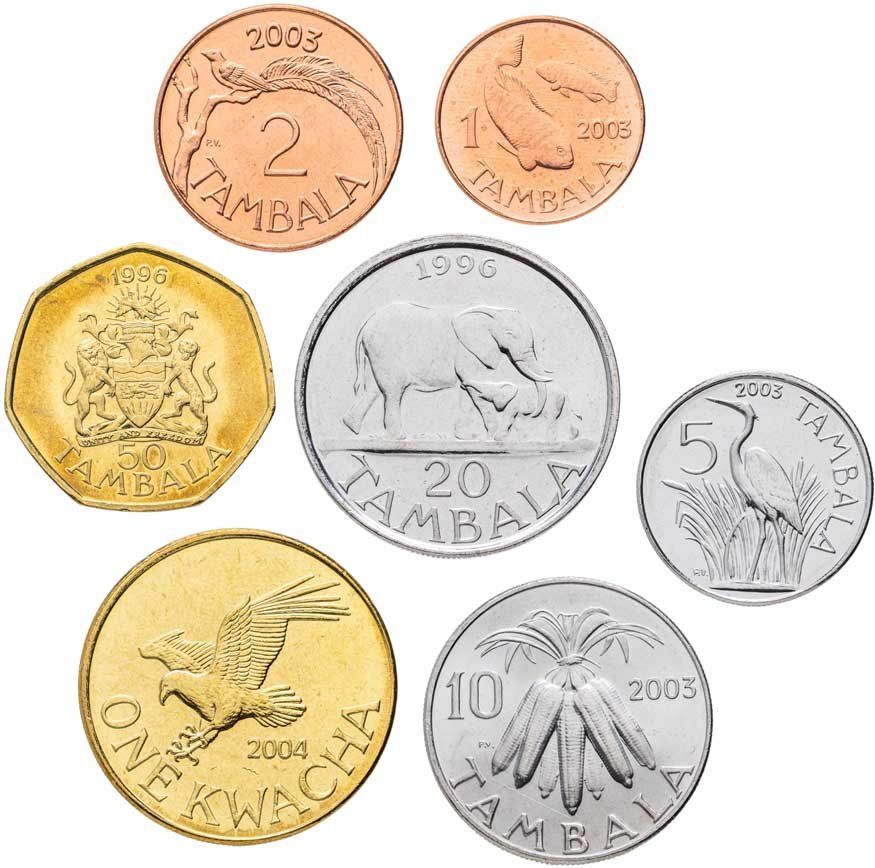 Номиналы 1, 2, 5, 10, 20 и 50 тамбала; 1 квача