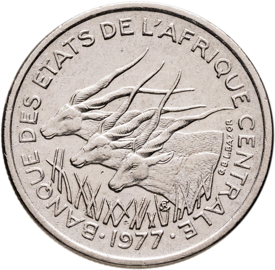 Центральная Африка (BEAC) 50 франков (francs) 1977 Отметка на реверсе "A" - Чад