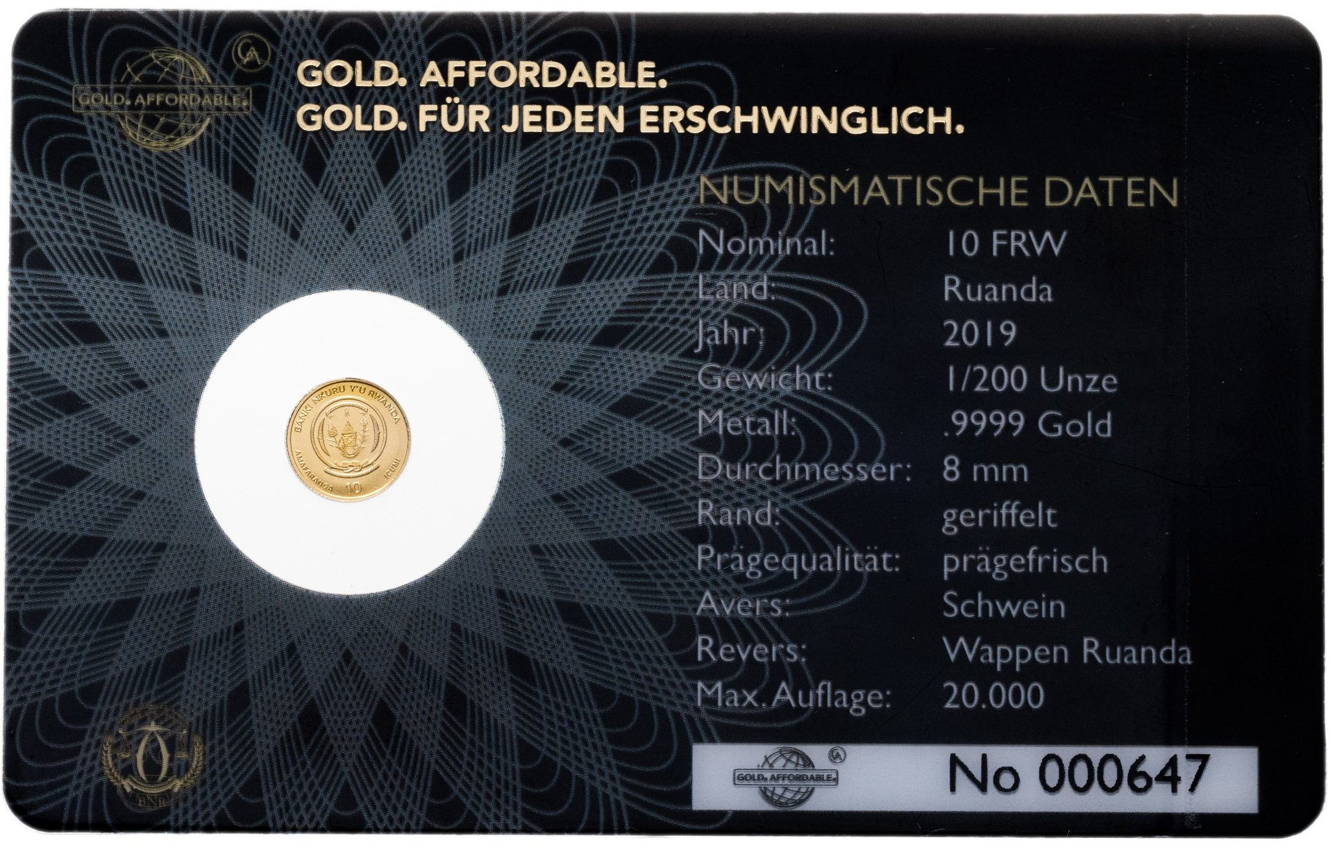 Руанда 10 франков 2019 Год свиньи
