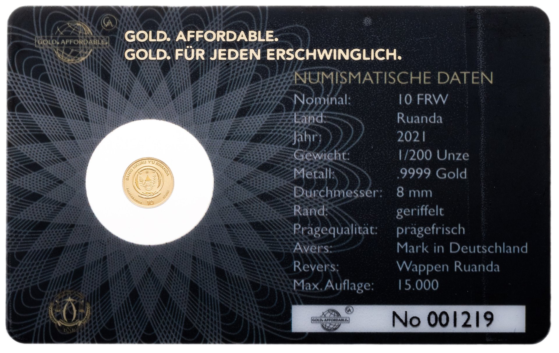 Руанда 10 франков 2021 150 лет немецкой марке