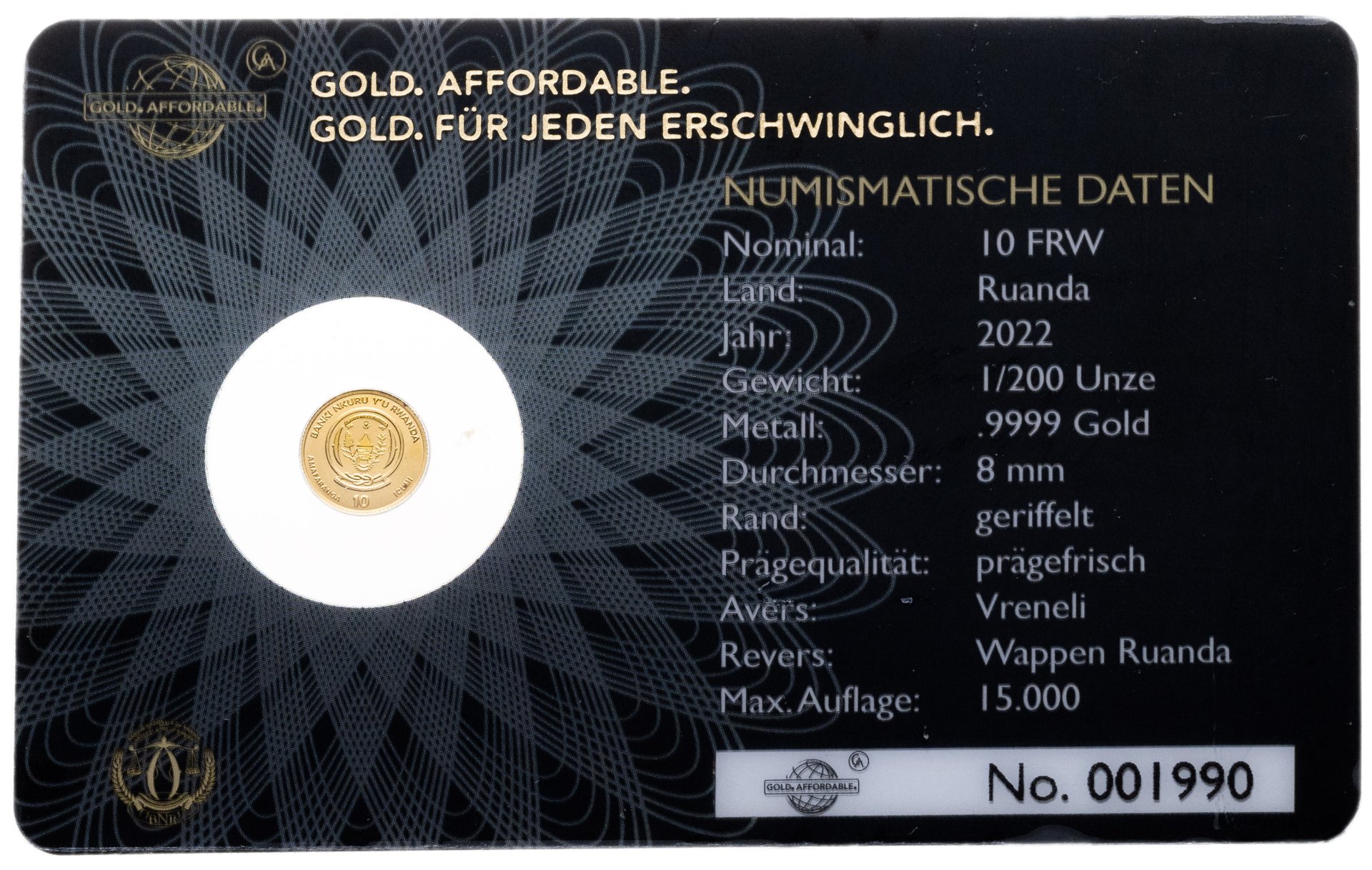 Руанда 10 франков 2022 125 лет Вренели