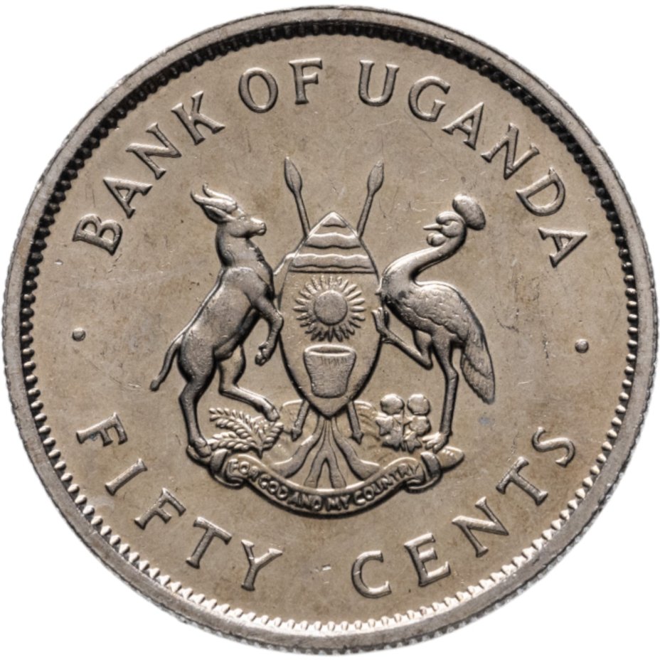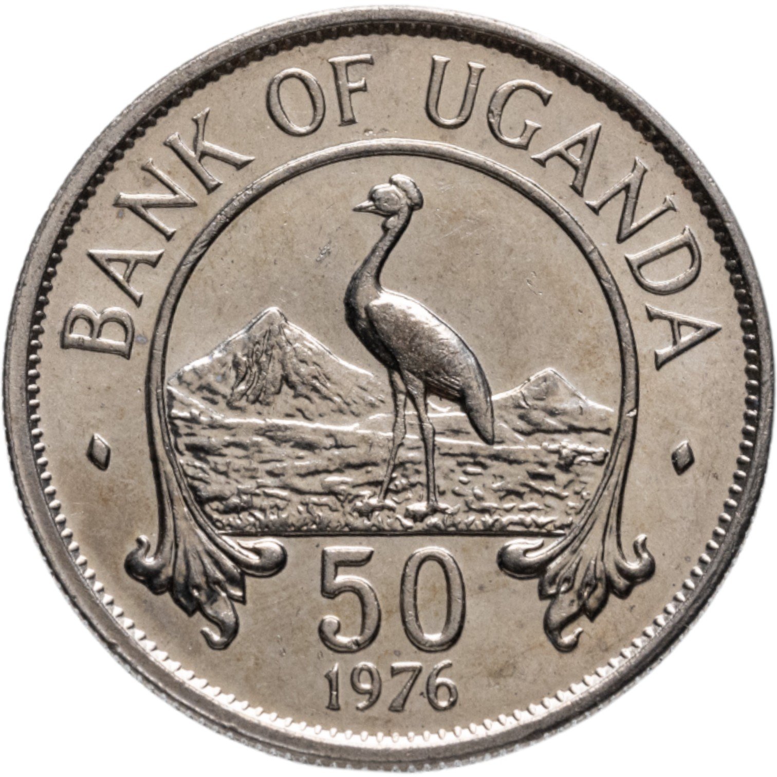Уганда 50 центов 1974-1976 "Восточный венценосный журавль"