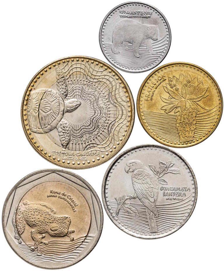 В 2012 году был изменен дизайн монет, но, несмотря на это, в обороте можно встретить монеты образца 1989 года. Новый дизайн значительно отличается от монет старого образца. На реверсе новых монет представлены представители местной флоры и фауны: очковый медведь, кустарник эсплеции, красный ара, стеклянная лягушка и черепаха логгерхед.